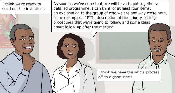 Dr. Carama, Shema, and Akil are pleased with their preparations for the meeting.